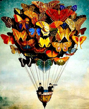 Ketidak mungkinan terbang dengan menggunakan kupu-kupu. Dalam hal nyata pasti menggunakan balon udara namun disini di ganti dengan kupu-kupu, sangat tidak masuk akal.