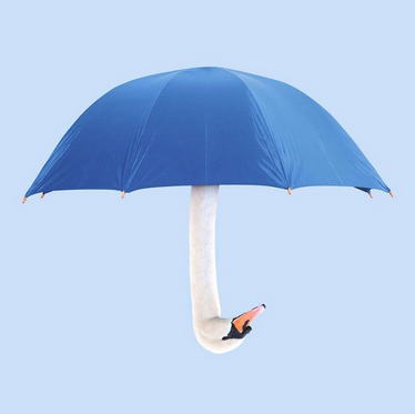 Gambar di atas adalah payung dengan tangkai angsa. Sepertinya tidak akan mungkin jika kepala angsa bisa di buat gagang payung