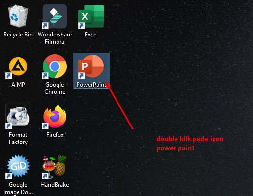 - Cari icon power point pada destop, kemudian klik dua kali pada tombol tersebut