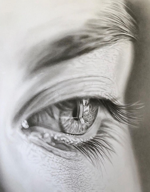 Gambar di atas adalah gambar mata. Perhatikan dengan baik detailnya mata ini sangat hidup. Bola matanya sangat jernih dan bening menatap kebawah dengan tatapan penuh makna.