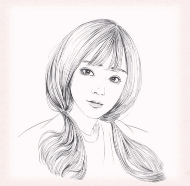 Gambar gadis cantik dengan rambut di kuncit dua sangat lucu. Cantik sekali lukisan wajah gadis dengan pensil.