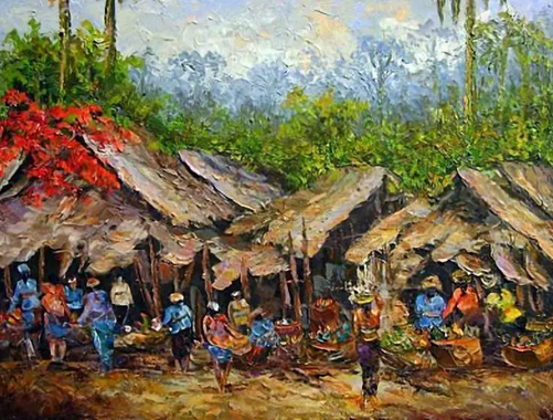 Gambar di atas adalah pasar pedesaan. Walaupun lukisan tersebut tidak begitu jelas dan sedikit abstrak namun terlihat bahwa terdapat pasar yang sedang ramai.