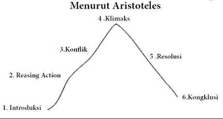 Alur atau disebut plot yaitu jalan cerita, susunan cerita, atau rangkaian cerita yang dihubungkan dnegan sebab akibat. Didalam alur yaitu ada alur maju dan alur mundur. Alur maju yaitu suatu cerita yang mengalir dari A sampai Z. Sedangkan alur mundur yaitu penggambaran cerita yang mengakhirkan bagian awal atau bisa disebut flashback. Struktur cerita menurut Aristoteles yaitu pada gambar bawah ini.