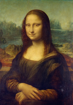 Lukisan ini sangat terkanal hampir di seluruh dunia. Gambar lukisan orang ini adalah Mona lisa karya dari seorang seniman Leonardo da Vinci pada tahun 1503. Terlalu populernya lukisan ini, setiap pameran pada museum mauvre patung Mona lisa selalu di cari oleh pengunjung. Gambar Mona lisa pada lukisan ini menggabungkan wajah laki-laki dan perempuan sehingga menghasilkan gambar dengan tatapan dan senyuman misterius.