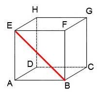 Benda di atas berbentuk kubus. Nama lain dari kubus adalah Hexaeder. Kubus memiliki 12 rusuk yang sama panjang dan 6 buah sisi yang berbentuk persegi, dan 8 buah titik sudut. Kubus memiliki diagonal dengan bidang sebanyak 12 buah, yaitu AF, BE, BG, CF, CH, DG, AH, DE, AC, BD, FH dan EG.