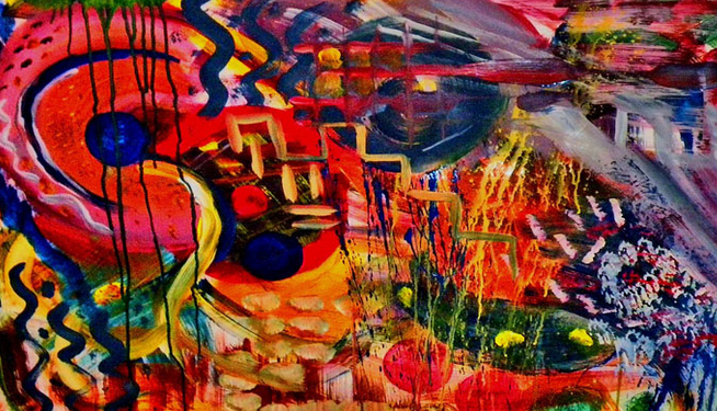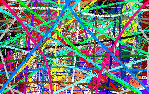Sekilas gambar di atas adalah coretan warna-warni yang berantakan. Hanya pelukisnya lah yang tahu apa maksud dari lukisan ini. Apakah dia menggambarkan tali yang berseraka? atau dengan mata terpejam kemudian asal coret saja?