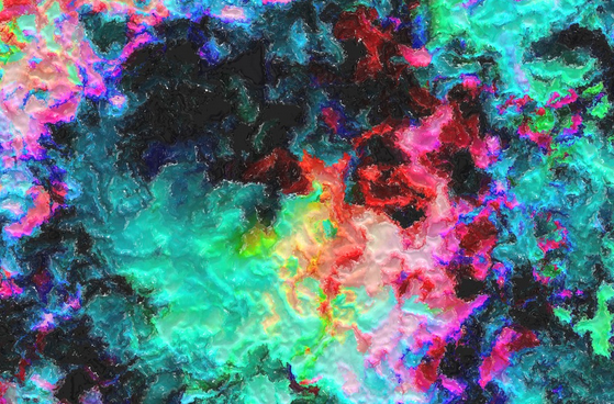 Pertama kali melihat lukisan ini seperti cat warna di tuang ke kedalam air sehingga membentuk warna-warni sedemikan rupa.