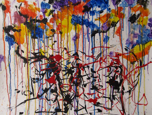 Telihat lukisan dengan warna yang tidak beraturan. Cuma pelukis yang tahu makna lukisan ini. Kalian bisa memberinya makna tersendiri.