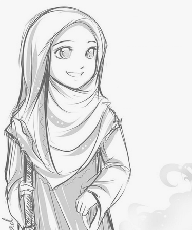 Sketsa Anime Hijab